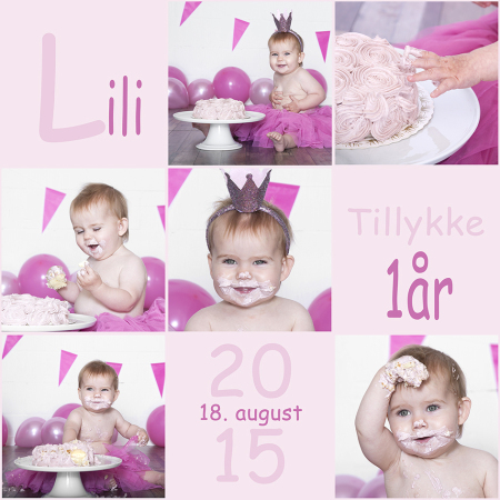 Smash The Cake fotografering er en anderledes måde at få nogle sjove billeder af dit barn. Det er især brugt ved barnets 1 års fødselsdag. I bund og grund sætter vi barnet foran kameraet og lader ham/hende lege med en lækker og flot dekoreret lagkage. Det giver nogle underholdende, friske og sjove billeder. Det sviner lidt, men det er den slags billeder, som barnet også vil synes er sjove, når han/hun bliver lidt ældre.